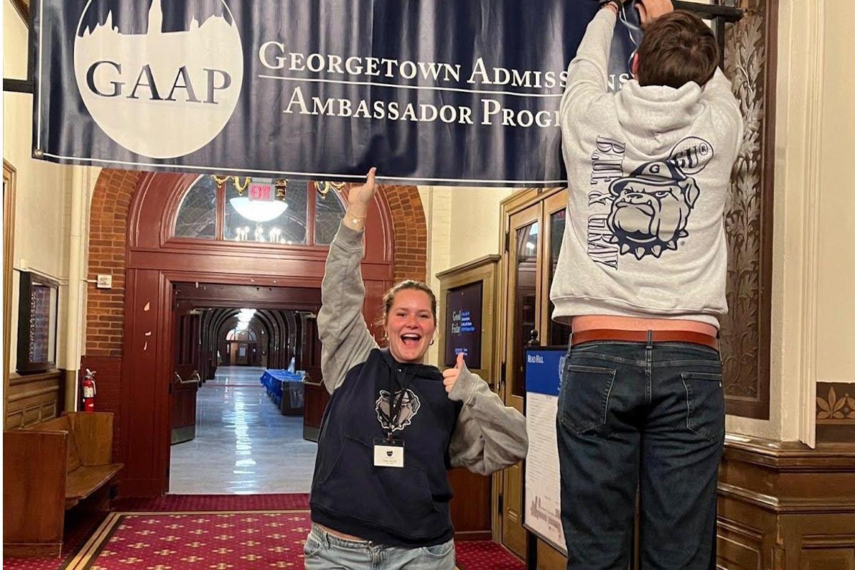 Coming to Georgetown and being across the country from all that was familiar to me, I was nervous about how I would find my home-away-from-home. In April of 2024, before I started at Georgetown, I attended an admitted students weekend, hosted by the Georgetown Admissions Ambassador Program (GAAP). This weekend showed me every aspect of Georgetown, from freshman dorms to dining halls, to the west coast connections that would bring me home across the country. So, when I was given the chance to join the GAAP in the fall as a publicity captain and then as a member of the board last spring, I jumped at the opportunity to be someone who could help new students find their home here.